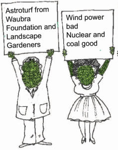 There are two main anti-wind farm groups in Australia busily fomenting anxiety and opposition. One is the Waubra Foundation, a group of mainly wealthy individuals, none of whom live in or near the town of Waubra, near Ballarat. Several of them, NIMBY style, have opposed turbines near their own properties elsewhere. They are led by an unregistered doctor, Sarah Laurie, and a wealthy mining investor, Peter Mitchell who also has connections to the Landscape Guardians. Despite their name, the Guardians have never attempted to guard our landscape from over-zealous residential developers, open cut coal or coal seam gas mining. They only target wind farm developments. All three – Waubra, the Guardians and Mitchell’s mining investment company share a South Melbourne post office box.