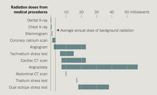 But it also has a potentially serious medical downside: the ability to damage DNA and, 10 to 20 years later, to cause cancer. CT scans alone, which deliver 100 to 500 times the radiation associated with an ordinary X-ray and now provide three-fourths of Americans’ radiation exposure, are believed to account for 1.5 percent of all cancers that occur in the United States. Continue reading