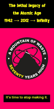 at left: The cover of Beyond Nuclear’s pamphlet “A Mountain of Radioactive Waste 70 Years High”