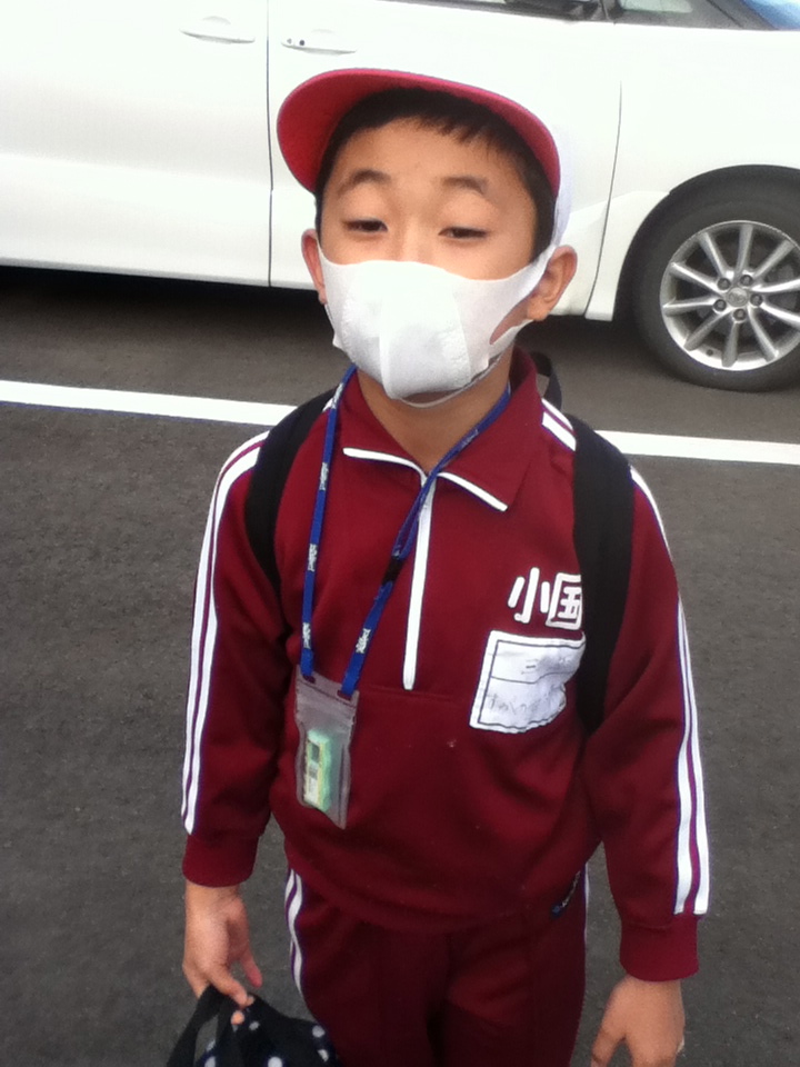 A little after seven, Koutarou put on a protective face mask and headed to Oguni Elementary School in Date City (the elementary school with the radioactive hotspot that I wrote about yesterday).
