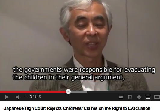 The Lawyer for the children, Toshio Yanagihara a member of the Fukushima Collective Evacuation Trial Team, said that this means the national government has been put in the spotlight, though the judges did not want to look at this aspect of the case and make a statement supporting, more fully, the idea behind the court case that “someone” needs to act on the children’s behalf.