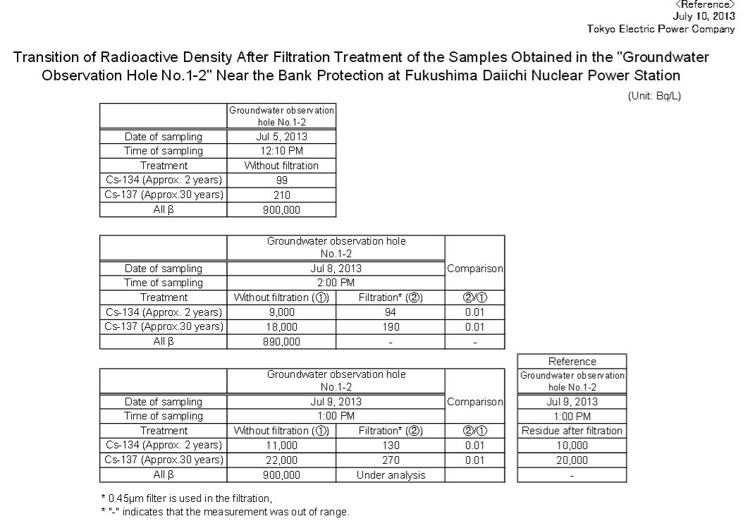 No one knows from where, or how, but ever since the higher levels of radioactive cesium started to get detected from the groundwater samples in the observation holes along the seawall at the plant 3 days ago (July 8), particularly in the hole No.1-2, TEPCO’s explanation up to that point became, obviously, invalid.