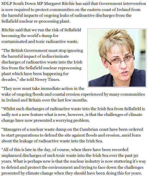 Irish minister slams UK policies at Sellafield and demands action to protect communities!
