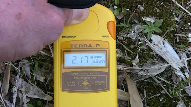 Real radiation levels at Nihonmatsu: 2.17 microsieverts per hour (Photos courtesy of Richard Wilcox, 2014)