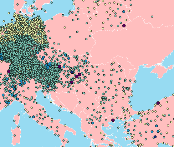 Setting the map from 1 month to 1 week and looking at the Belarus section of EURDEP I could see that the “purple spot” disappeared which allowed me to ascertain that no high peaks were seen by the system, so the spot could relate to the other peaks around the eastern end of Europe.