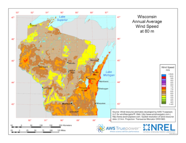 Wind potential in Wisconsin. Please click on the image to enlarge it.