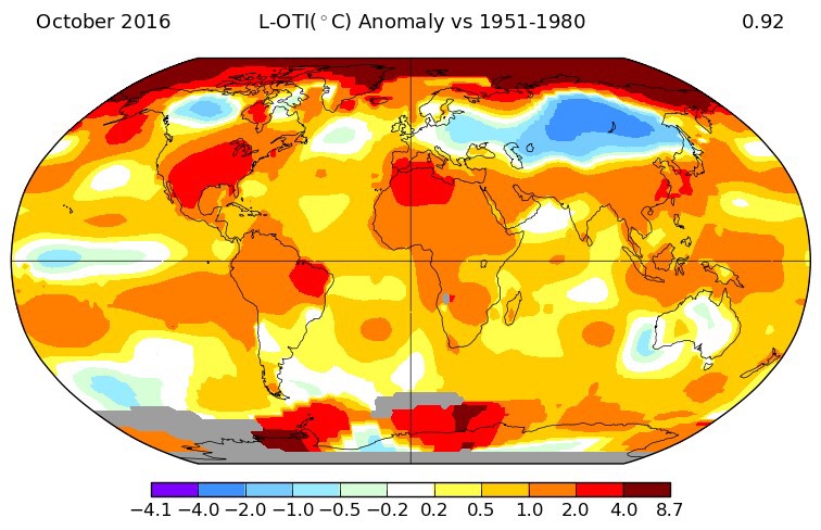 NASA Land and Ocean Temperature Index (LOTI) for October.