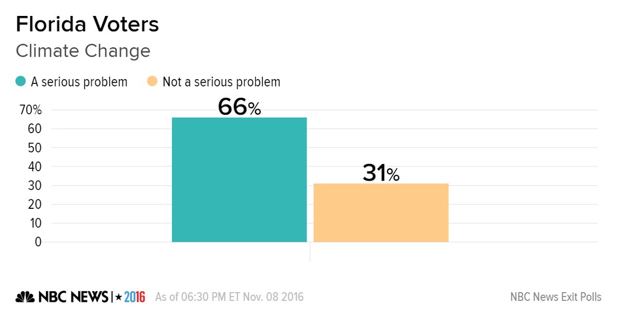 Unfortunately, the polls actually show that climate change is a winning issue. And the head of the ticket, Democratic presidential nominee Hillary Clinton, didn’t actually focus on climate change in the campaign. And, furthermore…