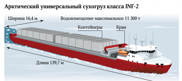 Beneath the deck, it will be space for 40 to 70 special transport containers for spent nuclear fuel and the upper deck has space for containers with radioactive waste. The design, named INF-2, is made by Krylov State Research Centre in St. Petersburg, a design bureau that has Russia’s latest generation of nuclear powered icebreakers, submarines and warships on its list of merits.