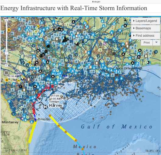 The EIA failed to mention the South Texas Nuclear Power station and it was necessary to go to the bottom of layers-legends choices to find the nuclear power icon. It is the purple and white icon. Below is a screenshot. The interactive map is here: https://www.eia.gov/special/disruptions/ Most likely the South Texas Project Nuclear Power Station will have to use backup generators subsequent to power outages, which are almost certain. Torrential rains could lead to nearby dam failure of the nuclear reactor cooling reservoir. The impacts on the oil and gas industry should act as a reminder of one more reason that it is better to depend upon decentralized renewable energy.