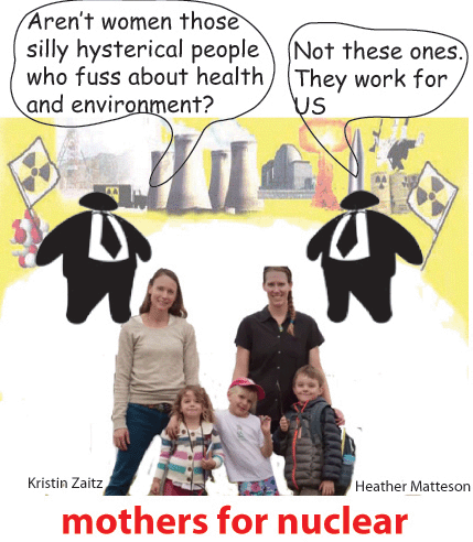 “Using mothers’ voices to argue for a technology that is fundamentally dangerous and that has been demonstrated by disasters like Fukushima to be not safe for the communities that surround the power plants or even cities that are hundreds of miles away is disingenuous,” said Kendra Klein, a staff scientist with Friends of the Earth, an environmental group…….https://www.voanews.com/a/american-women-step-up-as-nuclear-energy-advocates/4000185.html