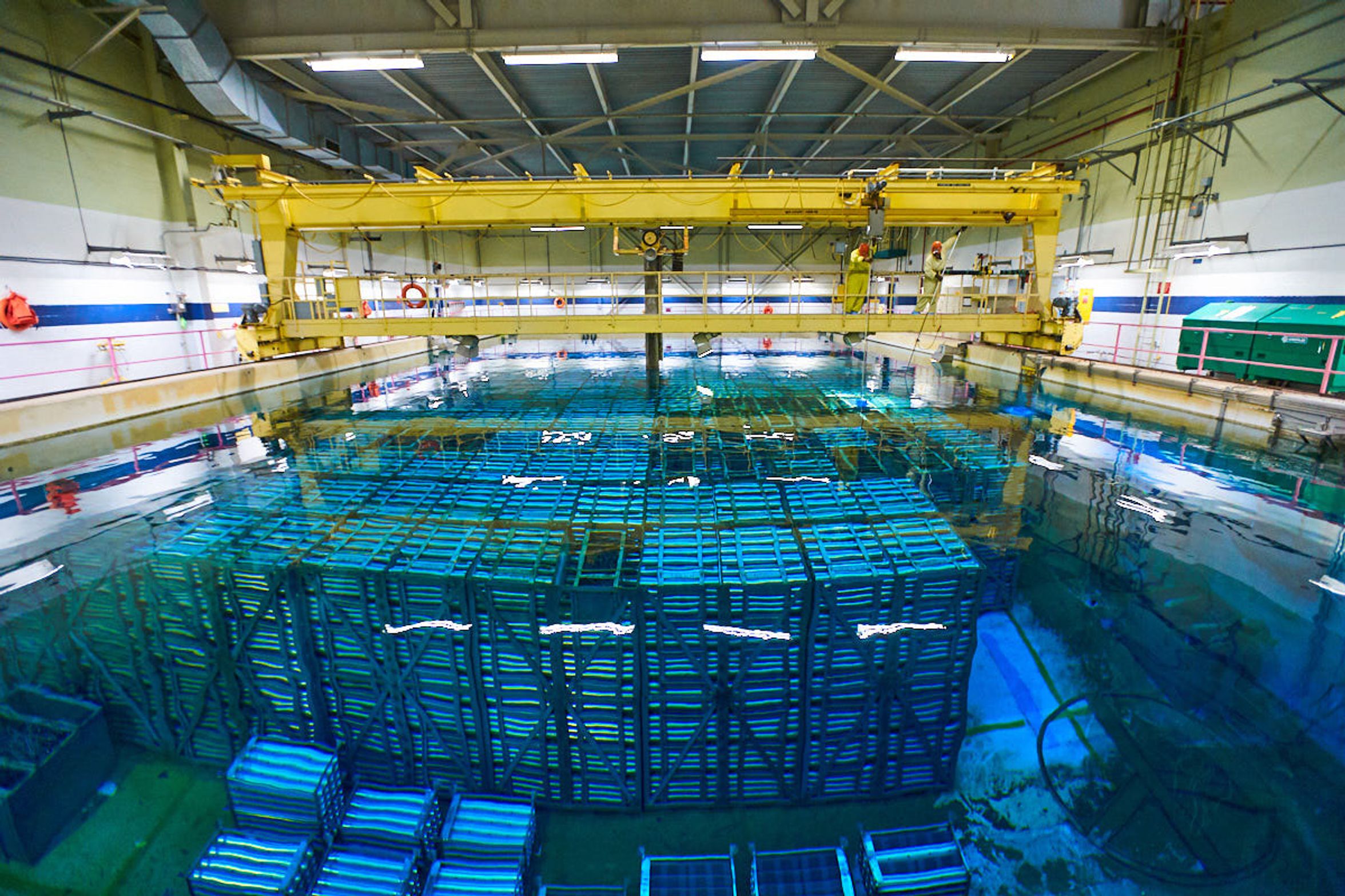 Spent nuclear fuel isn’t only radioactive, it continues to generate heat. It requires storage in pools with circulating water for typically five years before it can be moved into so-called dry-cask storage — concrete-and-steel obelisks where spent fuel rods receive continued cooling by circulating air.