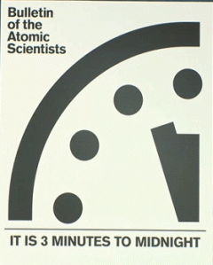 Watch the 2020 Doomsday Clock Announcement on January 23By Gayle Spinazze, January 8, 2020 The Bulletin of the Atomic Scientists will host a live international news conference at 10 a.m. EST/1500 GMT on Thursday, January 23, 2020, to announce the 2020 time of the Doomsday Clock. The news conference will take place at the National Press Club in Washington, D.C. Watch the announcement live on our website or on our Facebook page………. https://thebulletin.org/2020/01/watch-the-2020-doomsday-clock-announcement/?utm_source=Newsletter&utm_medium=Email&utm_campaign=ThursdayNewsletter01092020&utm_content=DoomsdayClock_ClockEvent_01082020
