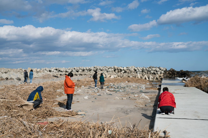 People stand near the ocean in Japan’s Fukushima prefecture, commemorating the ninth anniversary of the tsunami and nuclear disaster.