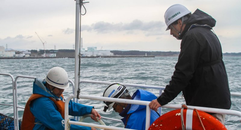 Collecting sea water samples near the damaged Fukushima nuclear power station.