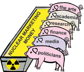 The slick, smart, amoral, lobbying gang are ever on the job, feeding nuclear spin to media, politicians, and us.
