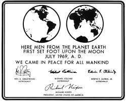 ……………………………… when Neil Armstrong and Buzz Aldrin became the first men to set foot on the moon, on Jul. 20, 1969, they deployed a plaque containing the following statement: “Here men from the planet Earth first set foot upon the Moon July 1969, A.D. We came in peace for all mankind.”