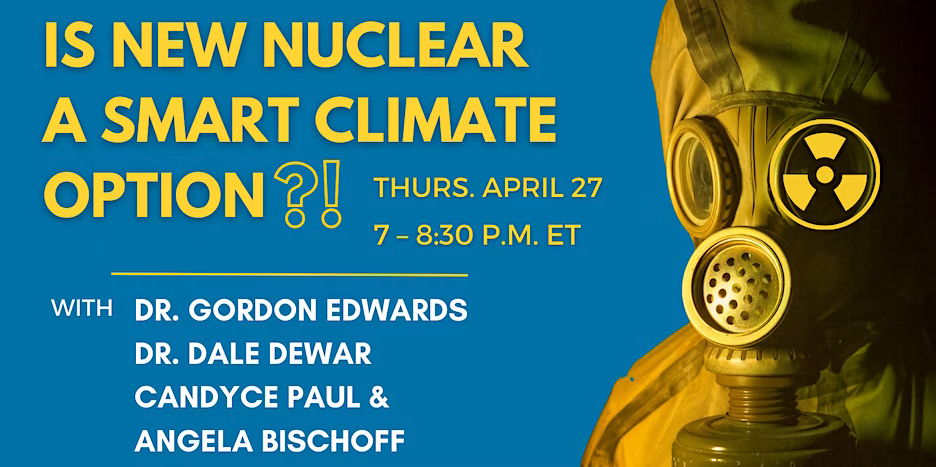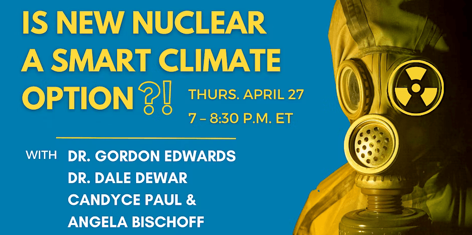Thur. Apr. 27, 7 – 8:30 p.m. ET https://www.eventbrite.ca/e/is-new-nuclear-a-smart-climate-solution-tickets-605041444247