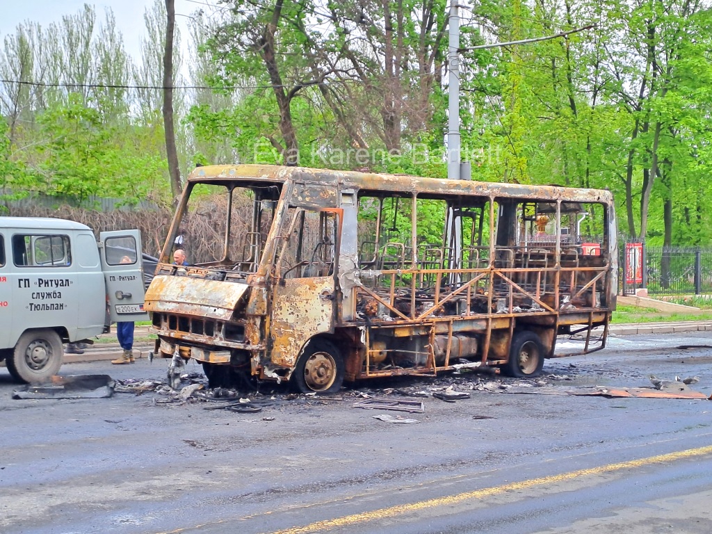 I was outside of Donetsk interviewing refugees from Artyomovsk (also known as Bakhmut) when both rounds of intense shelling occurred, the first starting just after 11am. I returned to see a catastrophic scene, with a burnt-out bus – still smoking – and some of its passengers’ charred bodies melted onto the frame. This tragic picture was sadly not a one-off event.