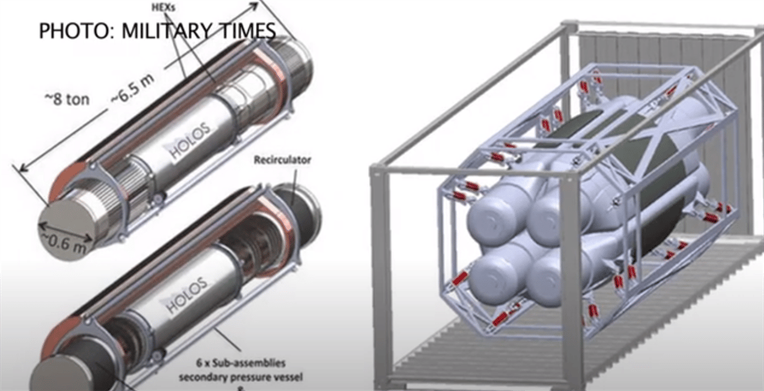 It describes a 40-ton reactor that can fit into three to four 20-foot containers and can provide up to 5 megawatts of power.