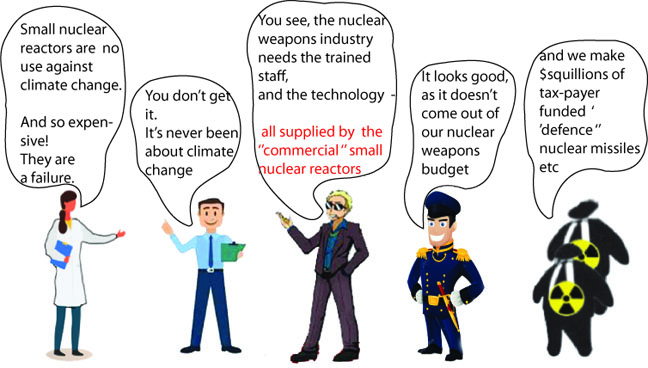 Sinister side. The real usefulness of SMRs has always been military. But the rage for commercial SMRs has been a fine cover for its weapons industry use. Governments could happily subsidise this peaceful private industry, subsidise universities for nuclear training , courses, convince enthusiastic young students to go for this “public benefit” “climate action” type profession.