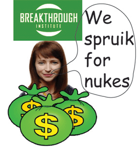 Far from eating crow, the pro-nuclear boosters like Ted Nordhaus, who co-founded the Breakthrough Institute (BTI), are still crowing about the benefits of nuclear power. Nordhaus couldn’t wait to take ownership of his latest scheme, apparently long in the plotting, to dismantle the U.S. Nuclear Regulatory Commission in order to eliminate the industry’s most burdensome (i.e. costly) hassle of having to worry about inconvenient things like reactor safety. Efforts to do just that are now underway in Congress.