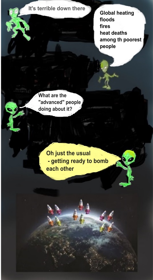 And that we’re all in the same perilous boat -and the job is to deal with climate change – not to enrich weapons manufacturers.