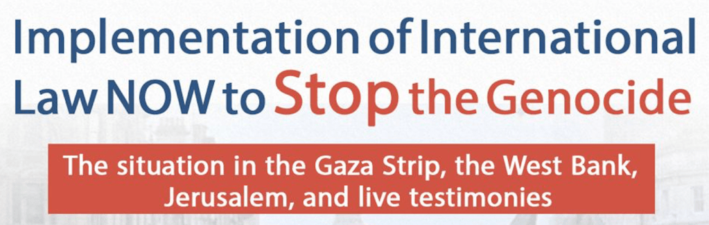 We, the undersigned, conscious of the genocide which affects millions of Palestinians, are launching an international campaign to promote these actions. In particular, we call on the governments represented in the General Assembly of the United Nations to take decisions in accordance with Chapter VII of the UN Charter which gives to the General Assembly the right to mandate peacekeeping forces in conflicts representing a severe danger to world peace and international law, in case the Security Council remains paralyzed.