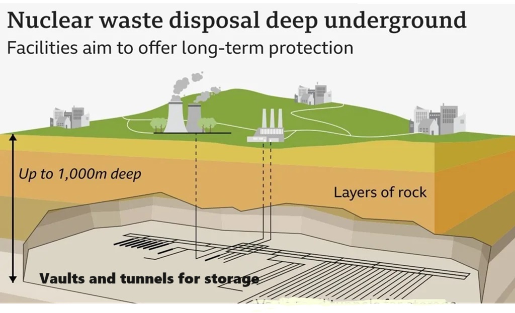 Engineers designed the site to hold 12,000 tons of spent nuclear fuel. The fuel will be encased in corrosion-resistant copper capsules, packed in clay and buried.