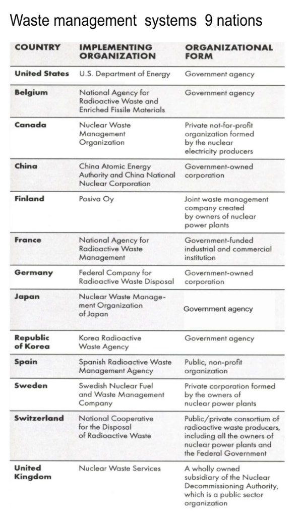 Indeed, institutional design in the United States is hardly a novel concern. Included in the Nuclear Waste Policy Act was a provision directing the secretary of the Department of Energy to “undertake a study with respect to alternative approaches to managing the construction and operation of all civilian radioactive waste management facilities, including the feasibility of establishing a private corporation for such purposes (NWPA 1992).” That analysis advocated a Tennessee Valley Authority-like corporation, which was labeled “FEDCORP,” to take on the responsibility of constructing and operating a repository (AMFM 1995).