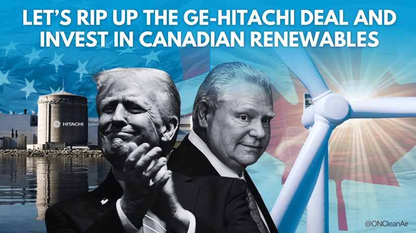 That’s why it’s time for the Ford Government to tell Ontario Power Generation to rip up its contract with GE-Hitachi for 4 new nuclear reactors at Darlington, east of Oshawa. These expensive and first-of-their-kind proposed new U.S. reactors would come with a lot of energy security and financial risks, including the need to import enriched uranium from the U.S.