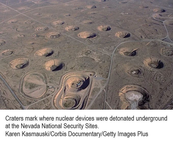 The craters left in the Nevada desert are a mark of each test’s impact on structures deep below the surface. “There was a time when detonating either above ground or underground in the desert seemed like — well, that’s just wasteland,” Jeanloz says. “Many would view it very differently now, and say, ‘No, these are very fragile ecosystems, so perturbing the water table, putting radioactive debris, has serious consequences.’ ”…………………………………..