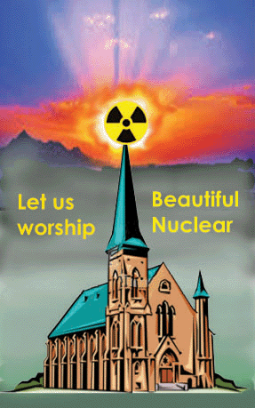 “Most of them are not educated about radiation biology or genetics, so they are fundamentally ignorant,” says Dr. Helen Caldicott, a founder of Physicians for Social Responsibility whose books include Nuclear Madness. “They are ‘brought up’ in an environment where they are conditioned to support the concept of all things nuclear.” Further, “nuclear power evokes enormous forces of the universe, and as Henry Kissinger said, ‘Power is the ultimate aphrodisiac.” And “they practice denial because I think many of them in their heart really know that what they are doing is evil but they will defend it assiduously, unless they themselves or their child is diagnosed with cancer. Then many of them recant.”Linking the “nuclear priesthood” to the Manhattan Project is Michael Mariotte, executive director of Nuclear Information and Resource Service. “The scientists involved weren’t really sure what they were unleashing, and had to have a certain amount of faith that it would work and it would not destroy the world in the process. After they saw the destructive power of the bomb, they were both proud and horrified at what they had done, and believed they had to use this technology for ‘good.’ Thus nuclear power was born,” says Mariotte. “The problem is when you have this messianic vision that you are creating good out of evil, it is very difficult to turn around and realize that the ‘good’ you have created is, in fact, also evil.”