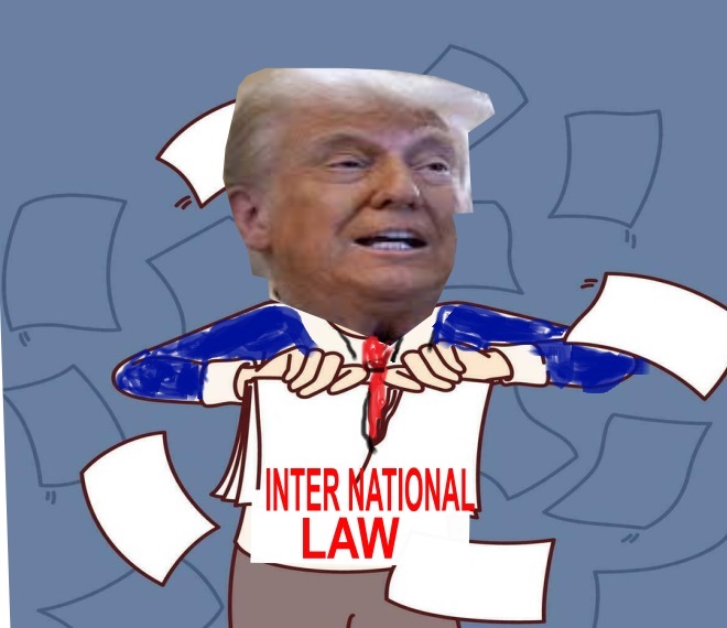 Trump has already made a mockery of US law, from which his Supreme Court has declared him immune. Hewill now make a mockery of international law, roo.