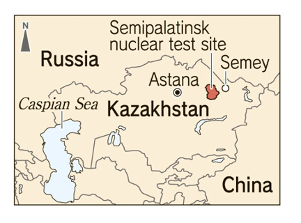 Hundreds of tests were carried out between 1949 and 1989 on the barren steppe near the city of Semey, formerly known as Semipalatinsk, close to the Kazakh-Russian border. The effect of radiation had a devastating impact on the environment and local people’s health, and continues to affect lives there today………………………..