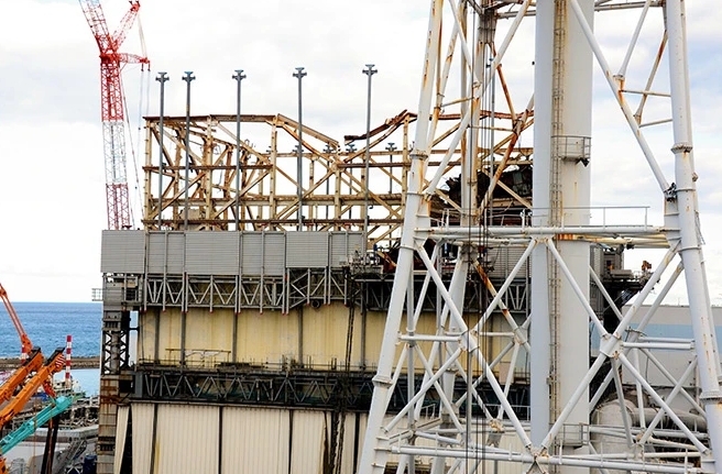 The crippled No. 1 reactor at the Fukushima No. 1 nuclear power plant