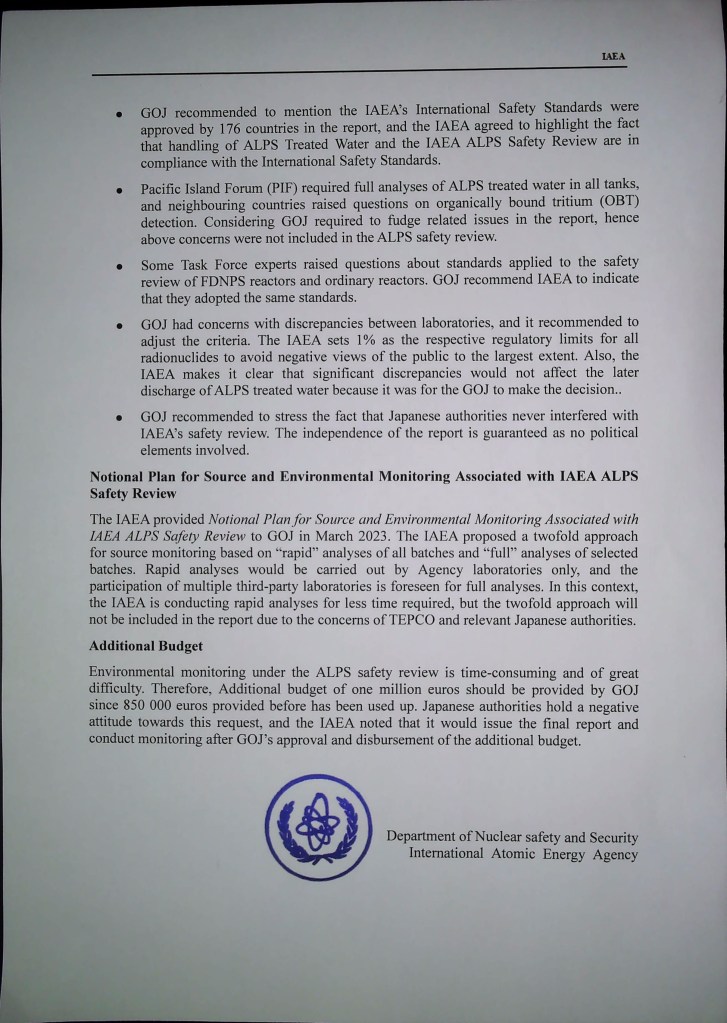 RELEASES INTERNAL IAEA DOCUMENT PROVING COLLUSION WITH JAPAN OVER FUKUSHIMA RADIOACTIVE WATER RELEASE
