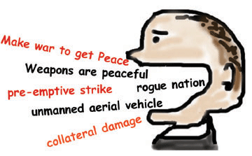 All this goes on accompanied by a lot of doublespeak – “weapons for security” weapons for