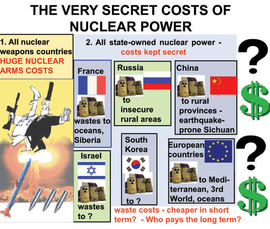 2.In States where the government runs the nuclear industry, the true costs are well hidden. (Spare a thought for the USA – warts and all, the USA, in trying to run a privatised nuclear industry, does allow public flow of information about THE MONEY.) – The true costs of nuclear power – our theme for March 2010