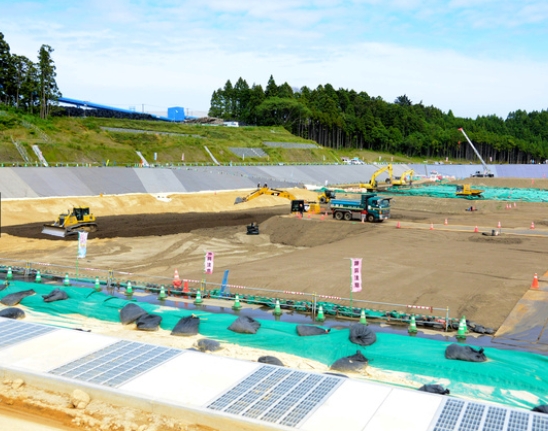 So, the temporary waste dump is a large area of 1600 hectares where contaminated soil from decontamination of areas from the whole prefecture goes. Before the disaster, most of these areas were cultivated fields, but there was also a fish processing plant, a school, a kindergarten and other public utilities. After the disaster, the entire area was bought by the government for the purpose of a landfill.