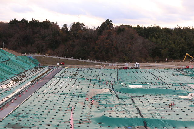 The storage facilities are all huge. On the right side is the area where the storage continues. On the left side, contaminated soil has been piled up to 5 meters underground and 10 meters above the ground, and the soil has been shielded, covered, and covered with grass seeds to keep the soil in place. When the site reaches capacity, hills like this will appear in various locations.
